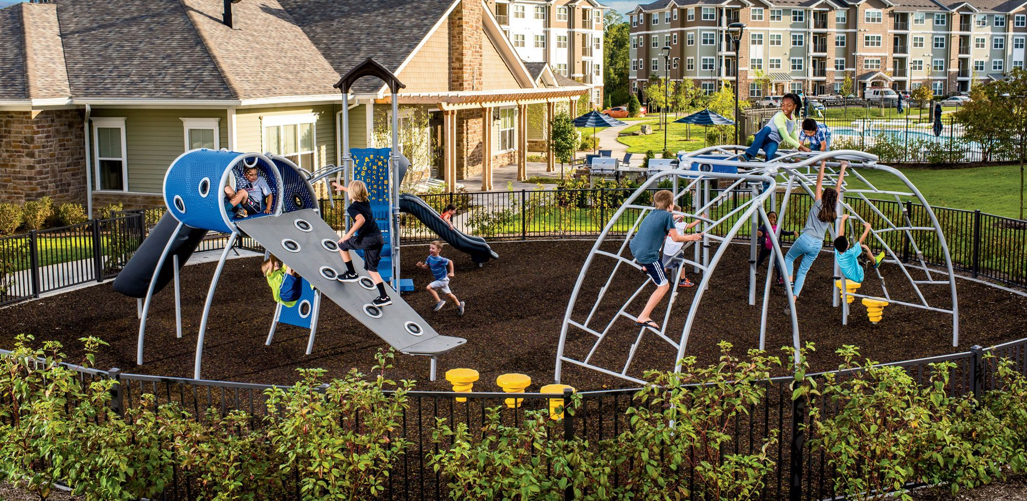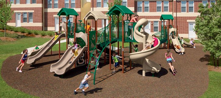 Durable, engaging playgrounds for high-traffic community spaces.